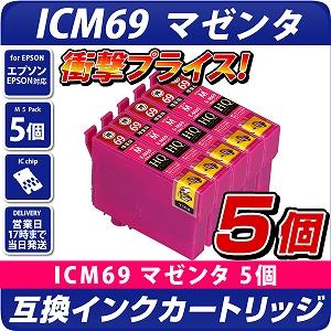 ICM69 マゼンタ 5個パック〔エプソンプリンター対応〕互換インクカートリッジ 5個セット EPSONプリンター用 ICBK69L【増量版】 赤